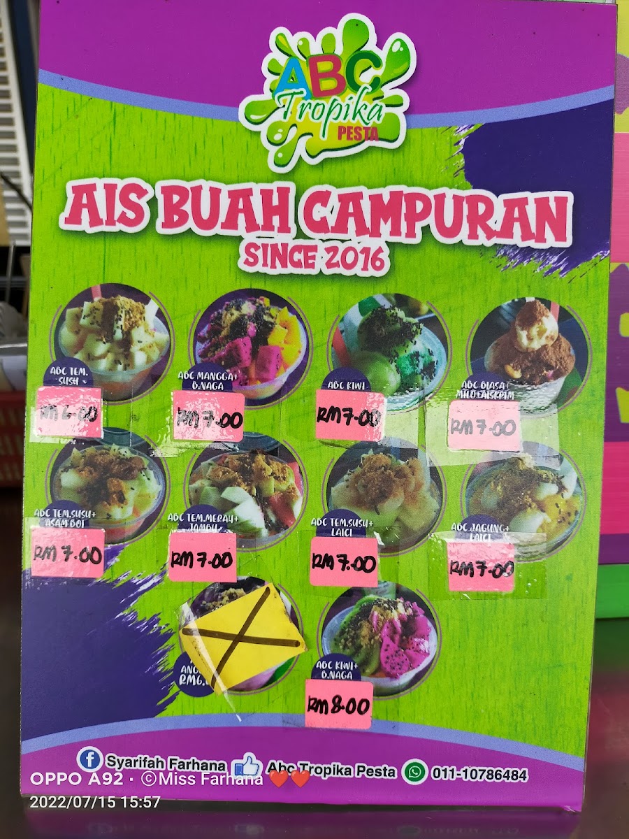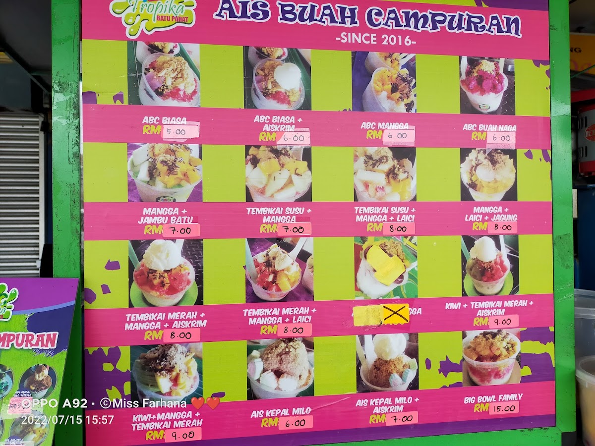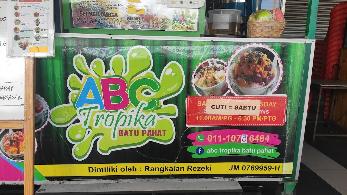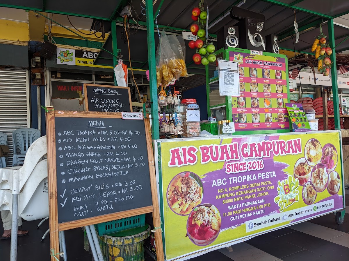 ABC TROPIKA PESTA in Batu Pahat is a vibrant restaurant known for its refreshing tropical concoctions, located conveniently at No 4, Gerai Pesta, Jalan Suasa. The menu shines with unique ABC (Air Batu Campur) blends featuring fresh ingredients like dragon fruit, mango, lychee, and corn, perfectly suited for the Johor Darul Ta'zim heat. Customers rave about the signature ABC, describing it as exceptionally satisfying and refreshingly bold, ideal for cooling down on sweltering days.